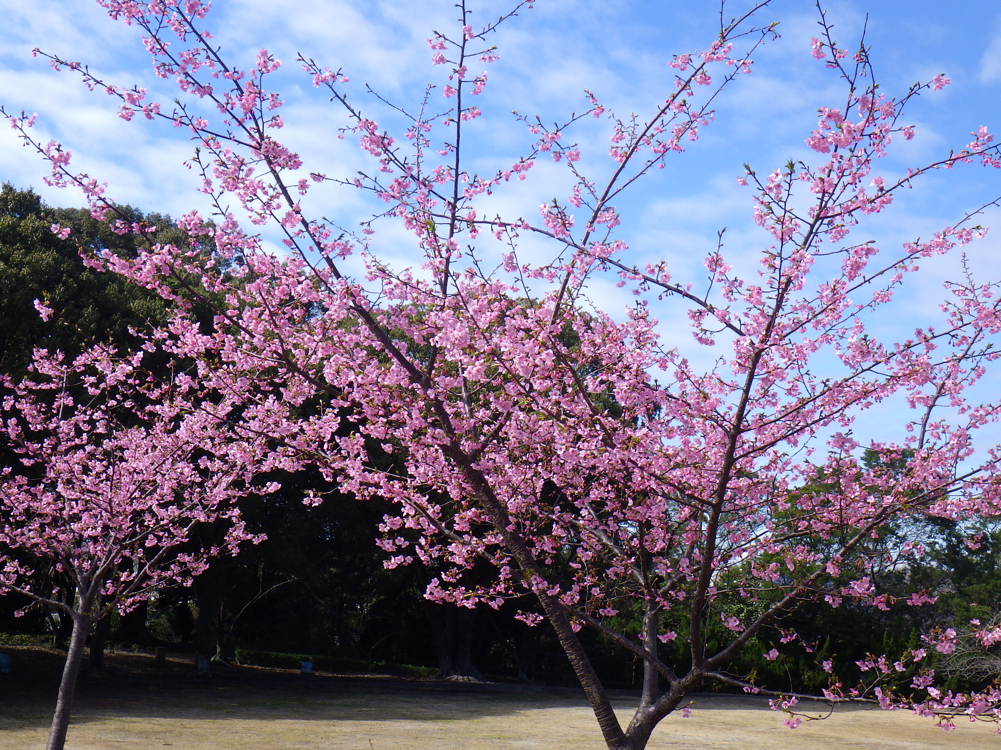 管理事務所南側にある枝垂れ梅の木です。ここ最近の暖かさで、蕾が少しずづ開花し始めていて、全体的にピンク色になってきています。三分咲きといったところでしょうか。これからの開花も楽しみです。