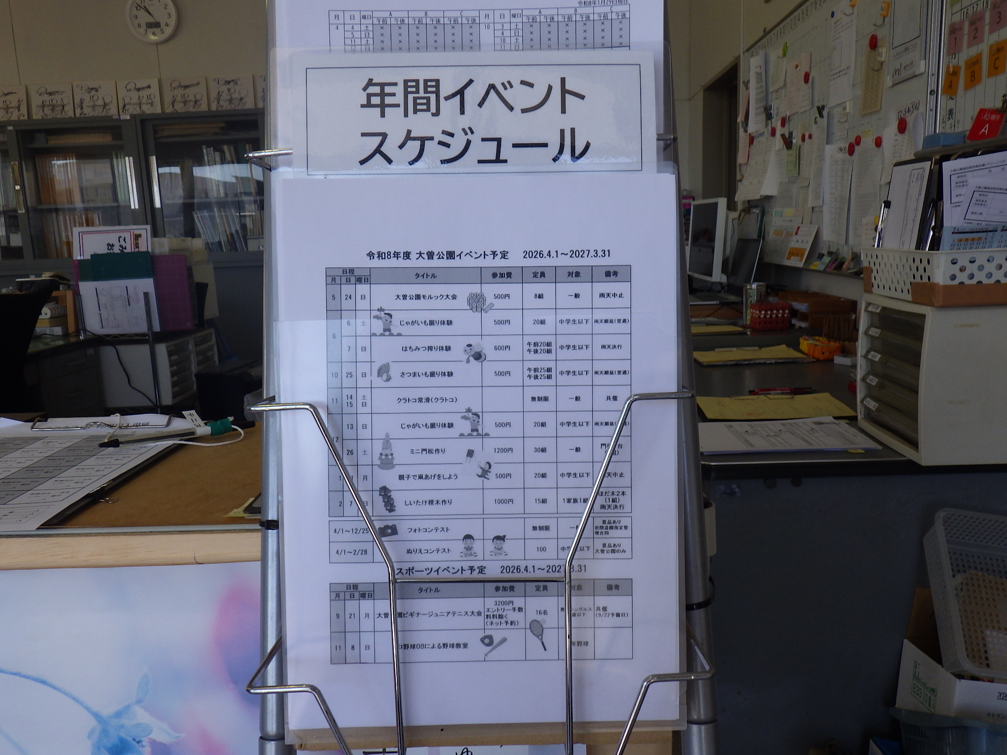 テニス大会(R8.2.3現在)、多目的グラウンド空き状況(R8.1.29現在)・野球場空き状況(R8.2.23現在)を用意しております。